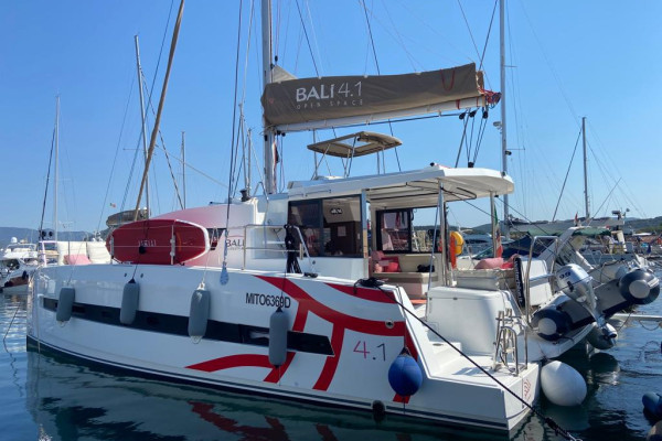 With its 4 cabins with 4 bathrooms, this Catamaran can accommodate up to 2 people. In each cabin you will find cotton satin sheets and pillowcases. Other amenities included: freezer, oven, full optional kitchen, coffee maker, kettle, barbecue, radio, stern shower, watermaker, solar panels.
