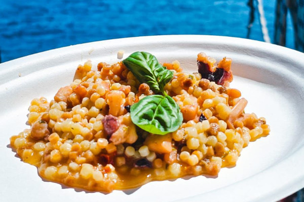 Luxury hotels and residences, sparkling nightlife, selected boutiques, aperitifs and elegant evenings, but above all a unique sea in the world with unparalleled colors and transparencies that will remain etched in the memory forever.After leaving our mooring, we will head towards the island of Mortorio for the first dive into the turquoise waters of this splendid island. White sand, crystal clear sea, colorful fish, marine fauna: this is what we will find in the first long stop of the day. We will then continue towards Punta Capriccioli for another stop in the famous bay of the same name. Here the sea water is incredibly clear, with turquoise and emerald green shades that lighten to become almost colorless as the seabed meets the fine white sand. We will then head towards Spiaggia del Principe for another dip in the turquoise waters of this famous and magnificent stretch of coast. Snorkeling, swimming, diving and encounters with the rich marine fauna are the "life-motive" of this memorable tour. An excellent and delicious aperitif accompanied by fresh Vermentino or Prosecco DOCG, offered mid-day, will satisfy the appetite and a good coffee with a Sardinian digestive will conclude the lunch break.