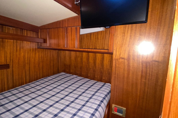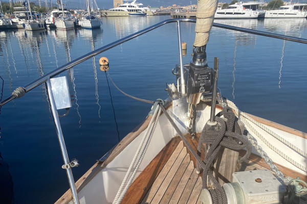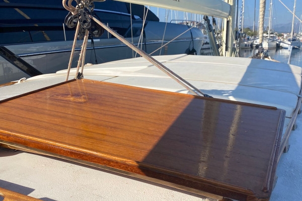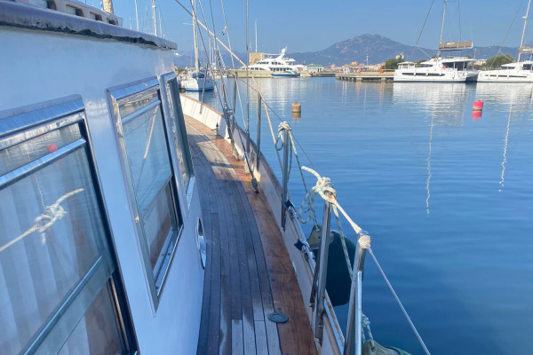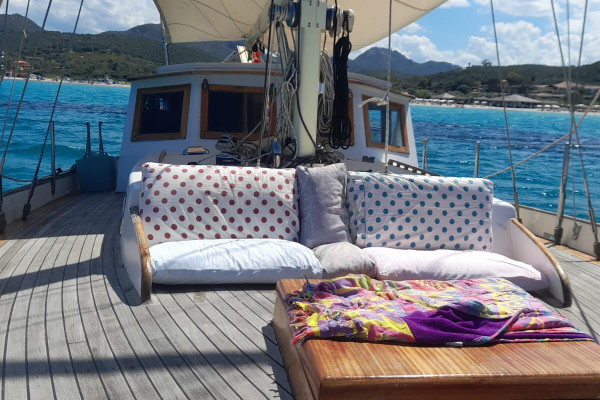 About the vessel -On-board equipment:Sailing vessel from 1968 designed by Carlo Sciarrelli, built by the CRAGLIETTO shipyard in laminated mahogany and teak.REFITTING 2021 – Volvo Penta 90 HP auxiliary engine – sun awning – bathroom ladders – external cushions and sun loungers – stereo system with music on deck – fridge and freezer – bathroom in the cabin with electric toilet and waste water tank for entry into marine parks – Cartographic GPS – radar – VHF – graphic depth sounder – external fresh water shower – teak deck – storage area for customer bags