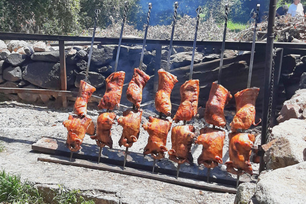 You will taste the typical food of Orgosolo produced at home. From the famous Sardinian pecorino cheese to smoked ricotta, you can also taste traditional cured meats such as bacon and sausage, boiled sheep and roast suckling pig. Combined with these local specialties, you will find glasses of Cannonau wine, homemade myrtle and Su Filu e Ferru, the typical Sardinian Brandy.With a full stomach you will face the last stage of the Orgosolo Experience tour and you will get to know the famous murals of the place.
